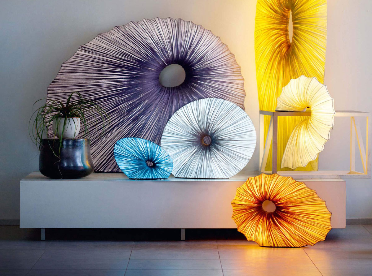 Die Aqua Creations Doe Tischleuchte ist Bestandteil der Orchestra Kollektion, die in Ihrem skulpturalen Design von Musik und organischen Formen der Natur inspiriert wurde. Der Anblick der Leuchte erinnert auch an ein großes Lotusblatt einer Seerose, dass als Symbol für Reinheit und Erleuchtung steht. Wie bei einem harmonischen Orchesterzusammenspiel, trägt die Doe Tischleuchte zur Lichtharmonie in den Einrichtungsräumen bei. Das Grundgerüst wird aus Metall gefertigt und mit von Hand gefärbter Seide bezogen, so entsteht ein interessante faltige Optik.