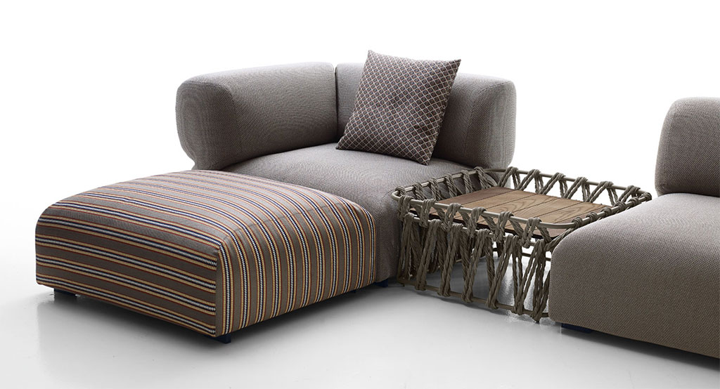 Patricia Urquiola, die großen Wert auf diese assoziative Verbindung legt, wollte, dass die Inspirationsquelle für diese Outdoor-Sofaserie auch am Namen erkennbar ist. Die Anregung für die „Vertiefung“ in der Polsterung stammt aus der Natur, auch wenn sie eigentlich eine strukturelle Funktion hat. Das Sofasystem ist extraweich und beliebig kombinierbar, um den Komfort des Wohnbereichs auch ins Freie zu übertragen.