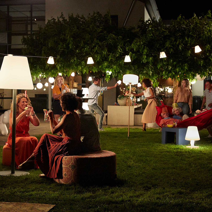 Die Fatboy Leuchten wie Transloetje bringen Kult-Glow in jeden Raum. Die LED Leuchten gibt es als Tischleuchte mit Akku sowie als mittelgroße Leuchte und Bodenleuchte mit Kabel. Zudem bietet Fatboy den ersten Kronleuchter der Welt für draußen, der auch Innenräume zum Strahlen bringt.