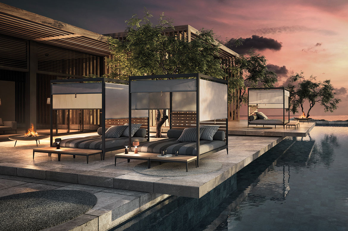 Natürliche, organische Formen sind perfekt für den Außenbereich geeignet. Das Design von Bora zeichnet sich durch eine harmonische Verschmelzung von Taktilem und Ätherischem aus.