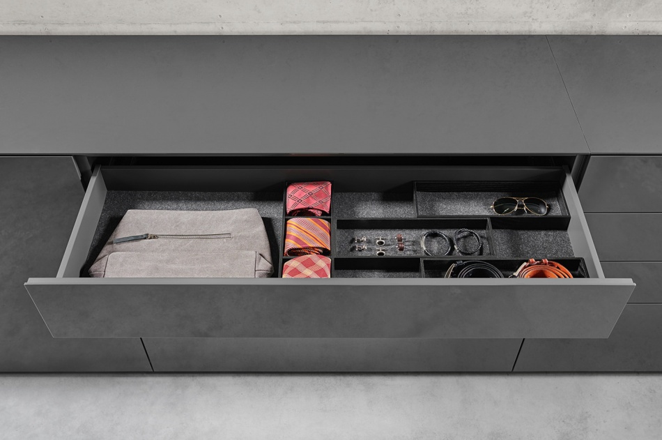 Ein Kleiderschrank in Endlosbauweise, der sich der Größe eines Raumes anpasst. Und den Namen SOMA verdient. Denn Merkmal dieses Systems sind die Oberflächen, die sich völlig frei kombinieren lassen. Auf Wunsch auch mit Magnetwechselsystem - die Blenden lassen sich dann zu jeder Zeit spielend leicht austauschen.