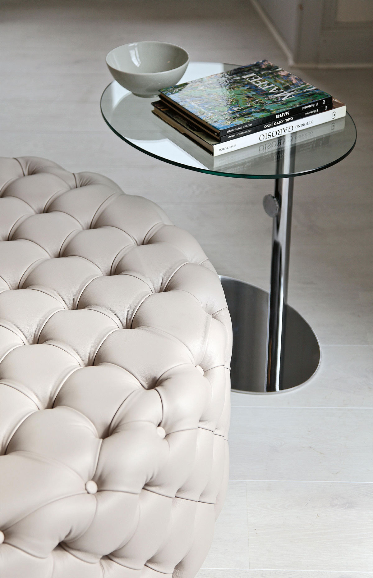 Pouf Alcide mit Capitonné in den Stoffen der Kollektion.