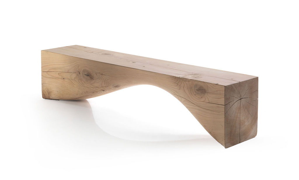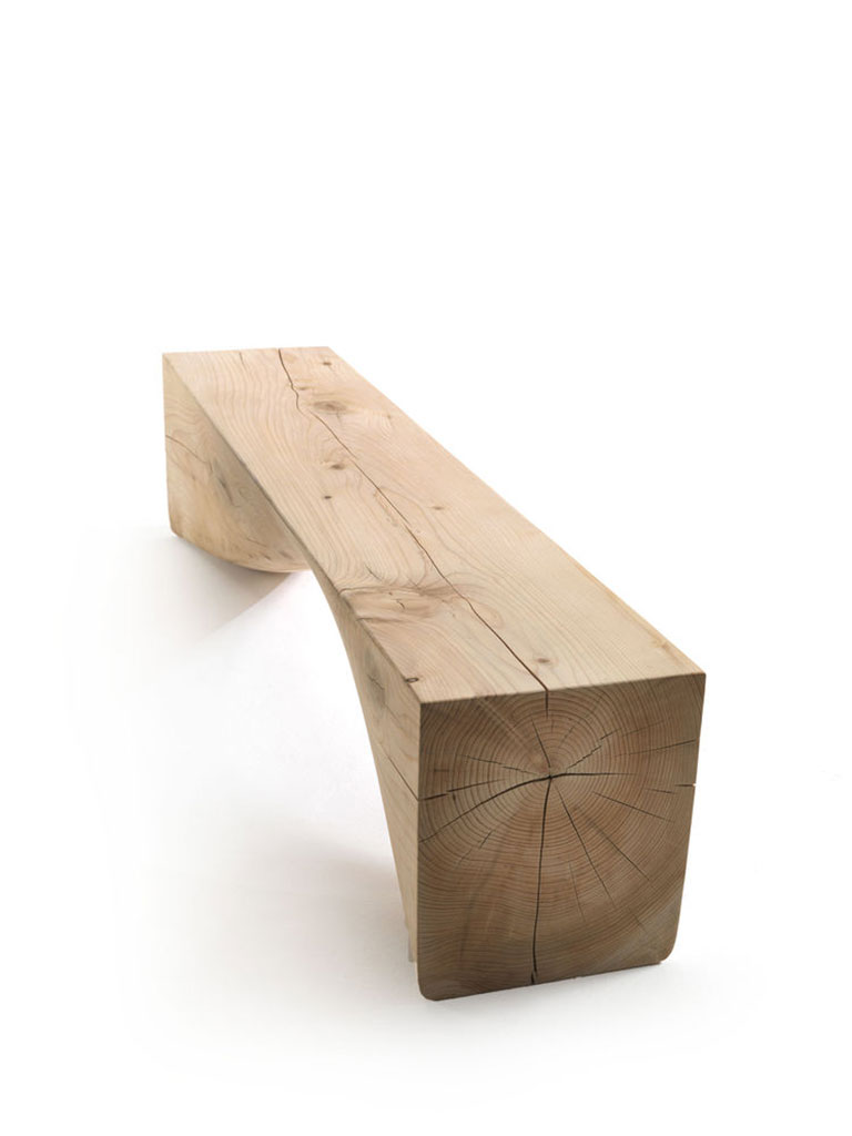 Die aus massivem, duftendem Zedernholz aus einem einzigen Block gefertigte Bank zeichnet sich durch ihre gebogene Form unterhalb der Sitzfläche aus, durch die die Maserung sowie die natürlichen Nuancen hervorgehoben werden. Auch erhältlich mit gepolstertem Kissen und Überzug aus Leder und Stoff.Hierbei handelt es sich um ein vollkommen natürliches und von Hand gefertigtes, unbehandeltes Möbelstück. Bewegungen, Risse und Veränderungen des Holzes sind eine unentbehrliche Eigenschaft dieses Möbelstücks und sie sind auf die natürliche Setzung und auf unterschiedliche Umweltbedingungen zurückzuführen.