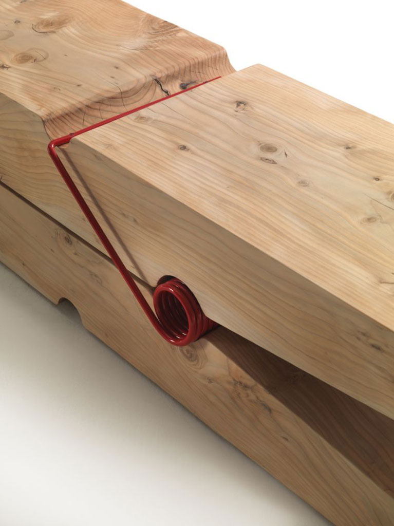 Aus massivem, duftendem Zedernholz aus einem einzigen Block gefertigte Bank, die sich durch ein bildhauerisches Design mit dem typischen maßstabslosen Spiel der Pop Art auszeichnet.Erhältlich in drei verschiedenen Größen: Mollettina, Molletta Medium und Molletta.Hierbei handelt es sich um ein vollkommen natürliches und von Hand gefertigtes, unbehandeltes Möbelstück. Bewegungen, Risse und Veränderungen des Holzes sind eine unentbehrliche Eigenschaft dieses Möbelstücks und sie sind auf die natürliche Setzung und auf unterschiedliche Umweltbedingungen zurückzuführen.