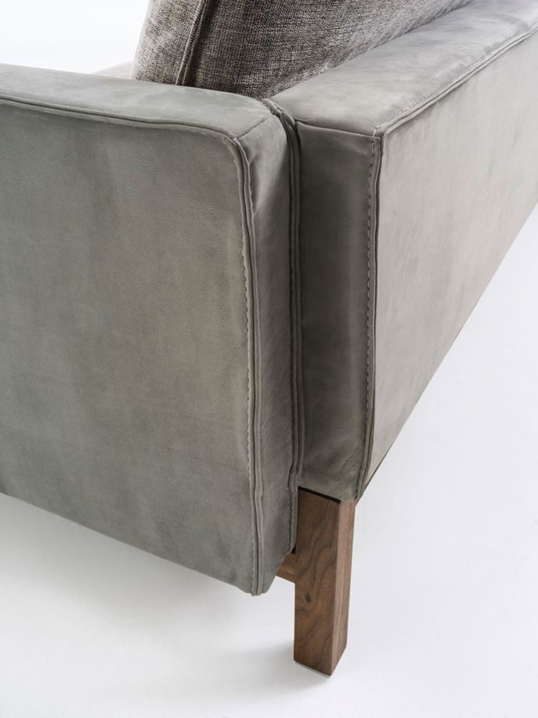 Das Sofa Maoli zeichnet sich durch ein ausgewogenes Volumen-Spiel, das an der Struktur eine strenge Natur gibt, die sich mit einem lineares Gestell aus Massivholz anschließen. Große Aufmerksamkeit auf die Wahl der Materialien, die sich weich anfühlen, sowohl für die lose Kissen als auch für die Armlehnen aus Nabuk Leder. Dieses Sofa sieht modulare Sofaelemente und elegante Chaise Longue vor.