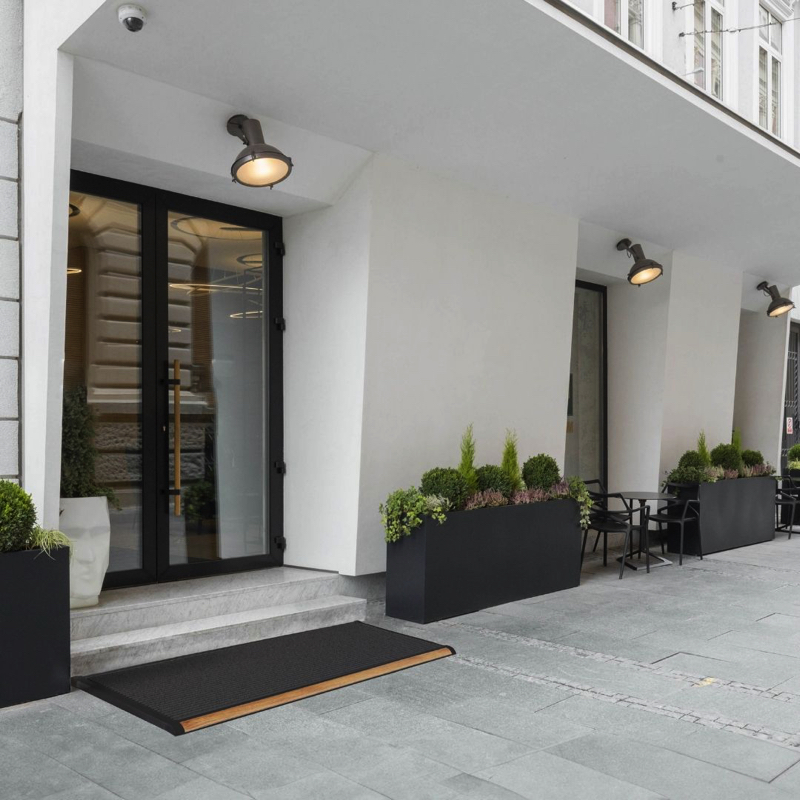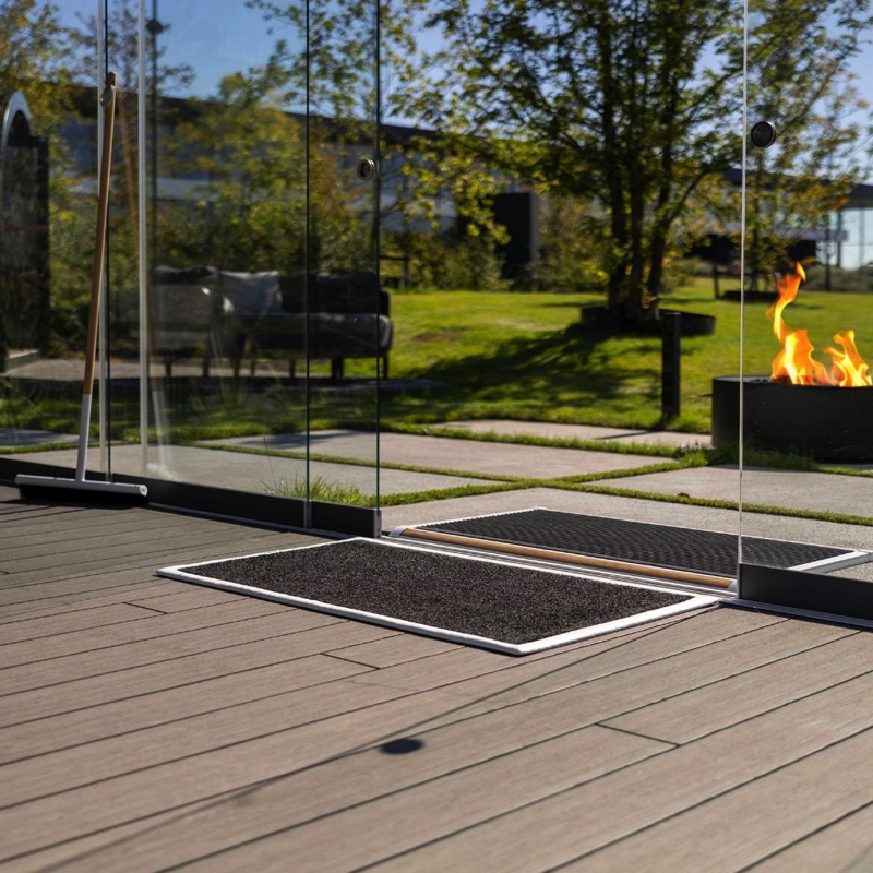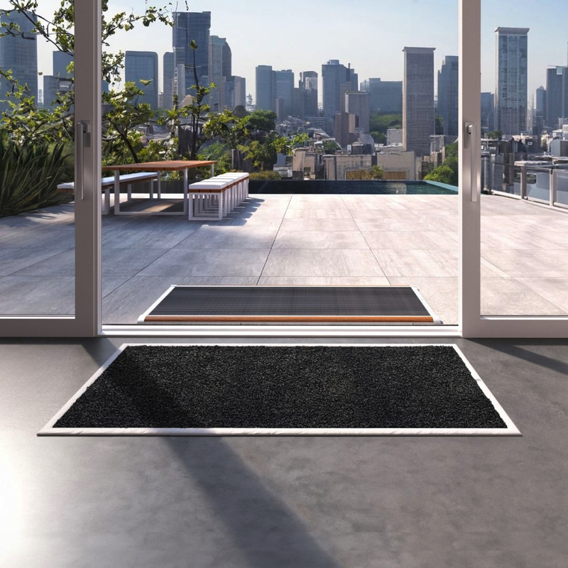 Die RiZZ | Außen- und Innenmatte wurde speziell für einen stilvollen Eingang bei jedem Übergang von außen nach innen entworfen. Die Matte für den Außenbereich eignet sich für Ihre Haustür, Hintertür und Terrassentüren und hält Schmutz stilvoll fern. Während die Außenmatte den Schmutz beseitigt, trocknet die Innenmatte die Sohle.