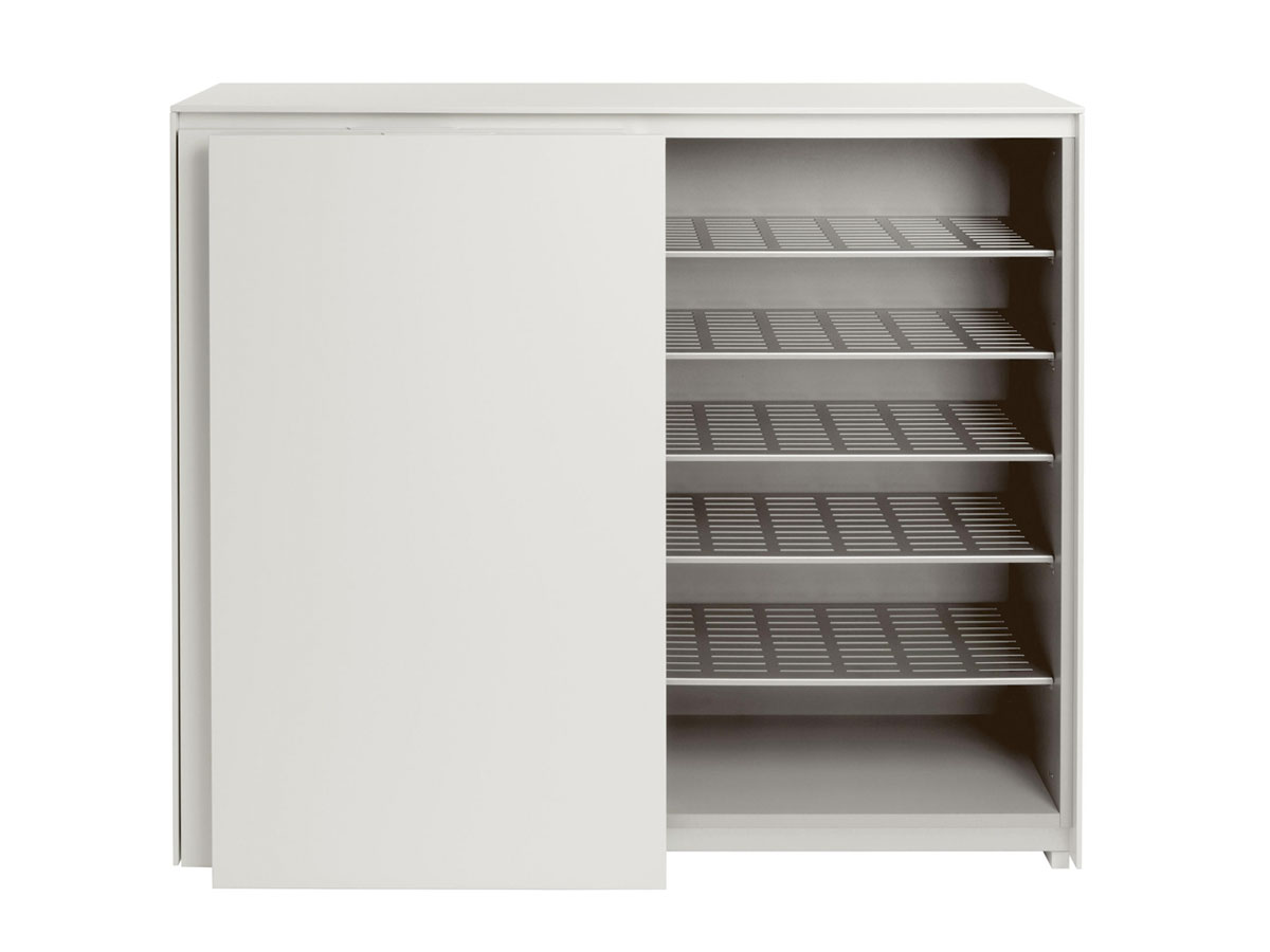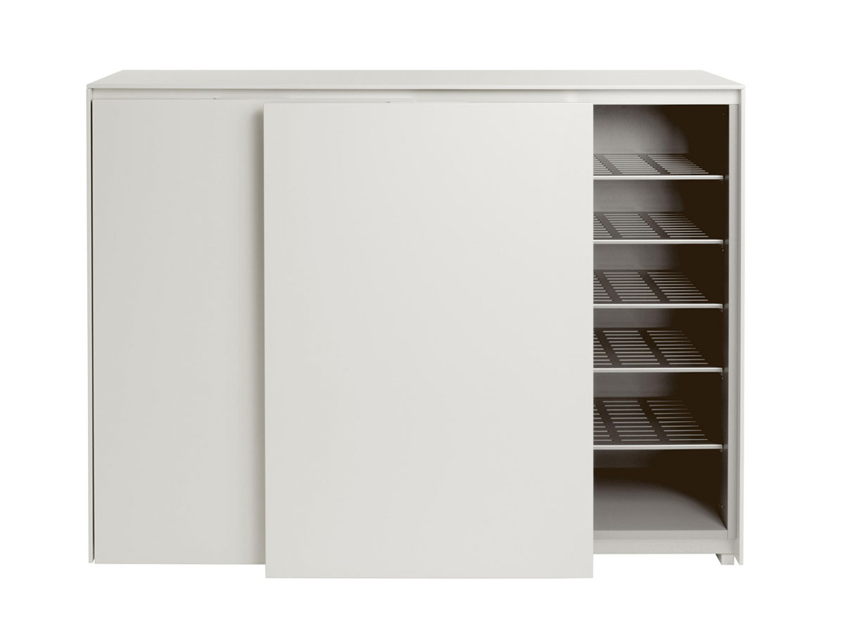 Die Inneneinteilung bietet - mit wahlweise Schuhböden, Fachböden und Schubkästen - viel Stauraum für Schuhe, Accessoires und die vielen anderen Dinge, die im Eingangsbereich griffbereit aufgeräumt sein sollen. Ein Möbel, das je nach Farbentscheidung mit seiner Umgebung optisch verschmilzt oder zum besonderen Blickfang werden kann. In jedem Fall steht es für perfekte Funktionalität und zeitlosen Purismus.