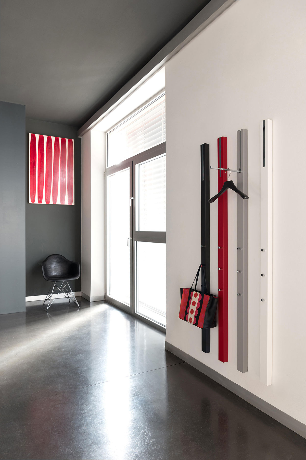 Ob als minimalistisches Einzelstück, monochrome Reihe oder vielfarbige Wanddekoration, ob in Pastellnuancen, klassischen Basistönen oder in Neonpink – diese Garderobe ist immer ein funktionales Highlight. Für die ausklappbare Mantelstange und die Haken stehen ebenfalls verschiedene Ausführungen zur Wahl.