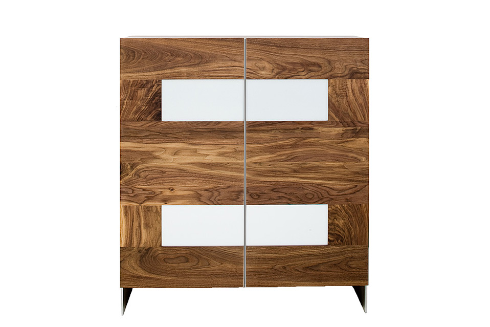 Cadero spielt bewusst und ausgewogen mit den geometrischen Formen von kühlen, farbigen Glasfenstern und massiven, unterschiedlichen Holzfronten. Schmale Edelstahlwangen tragen die fast schwebenden Korpusse auf elegante Weise. Das zu beleuchtende Innenleben der Korpusmöbel CADERO bietet totale Flexibilität in der Aufteilung und großzügige Dimensionen.