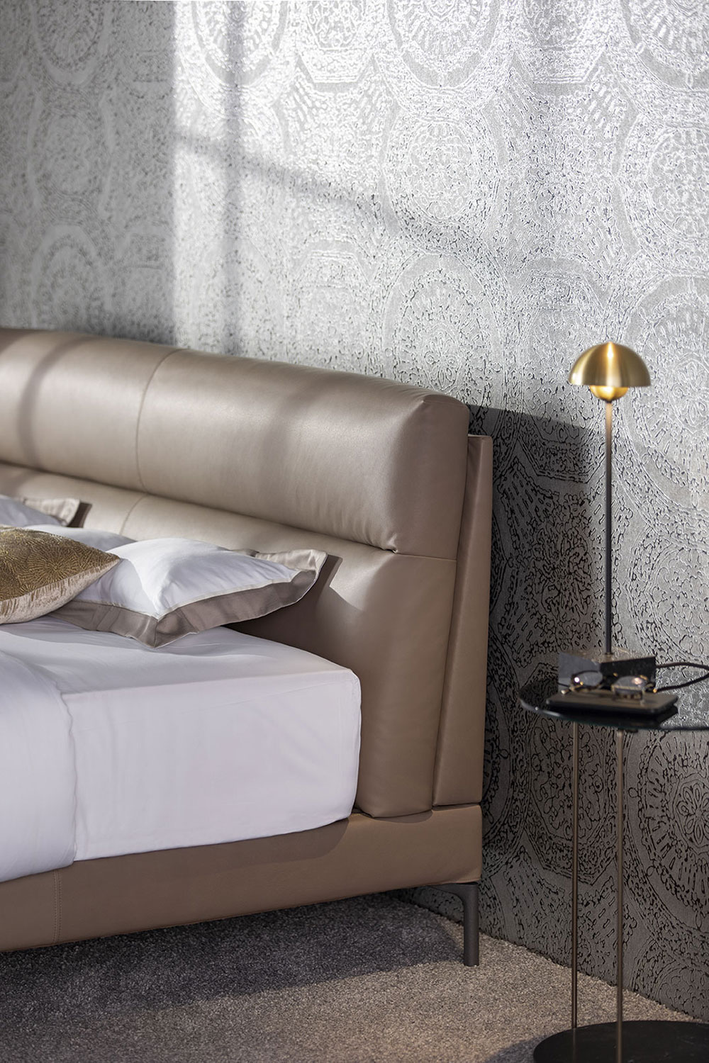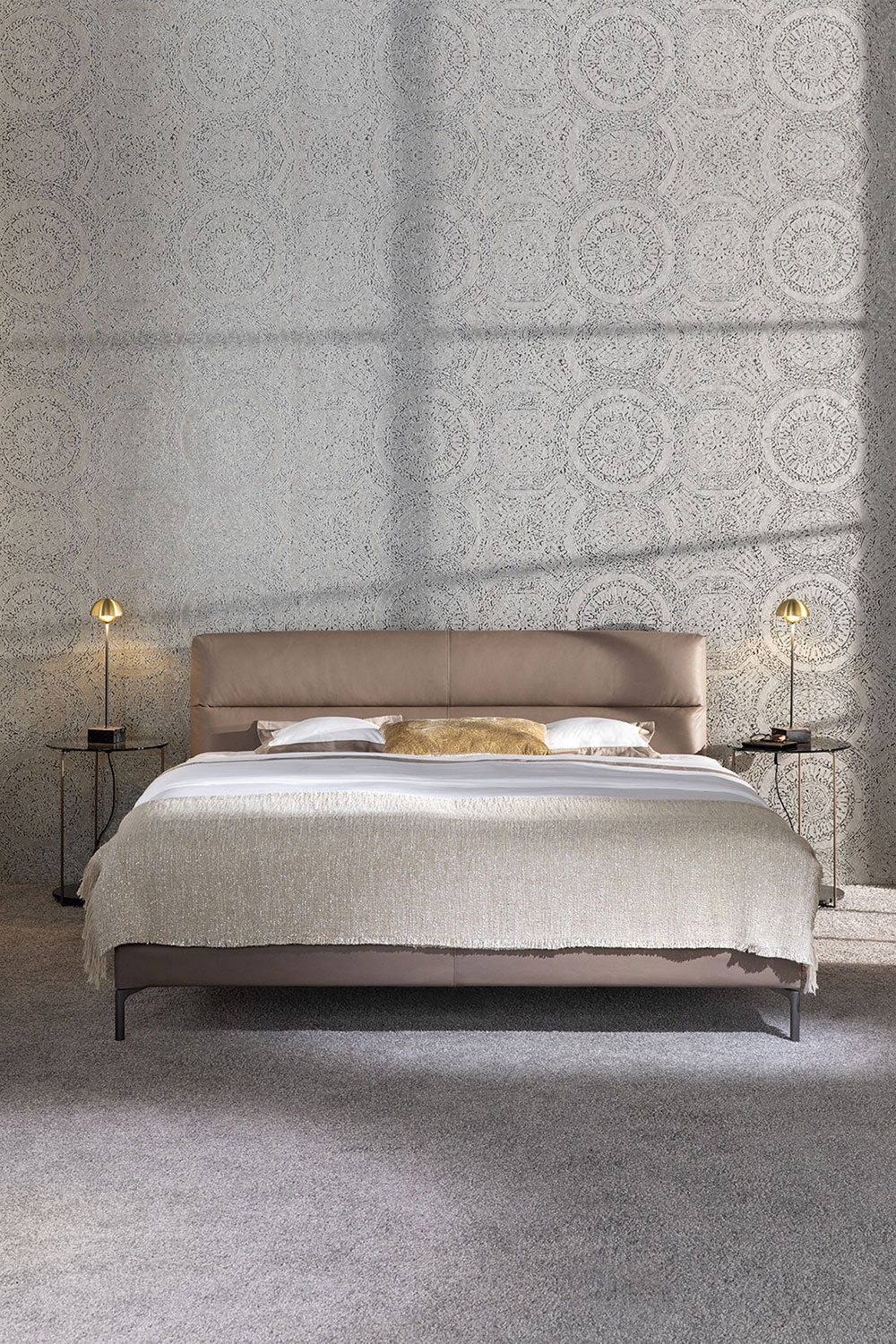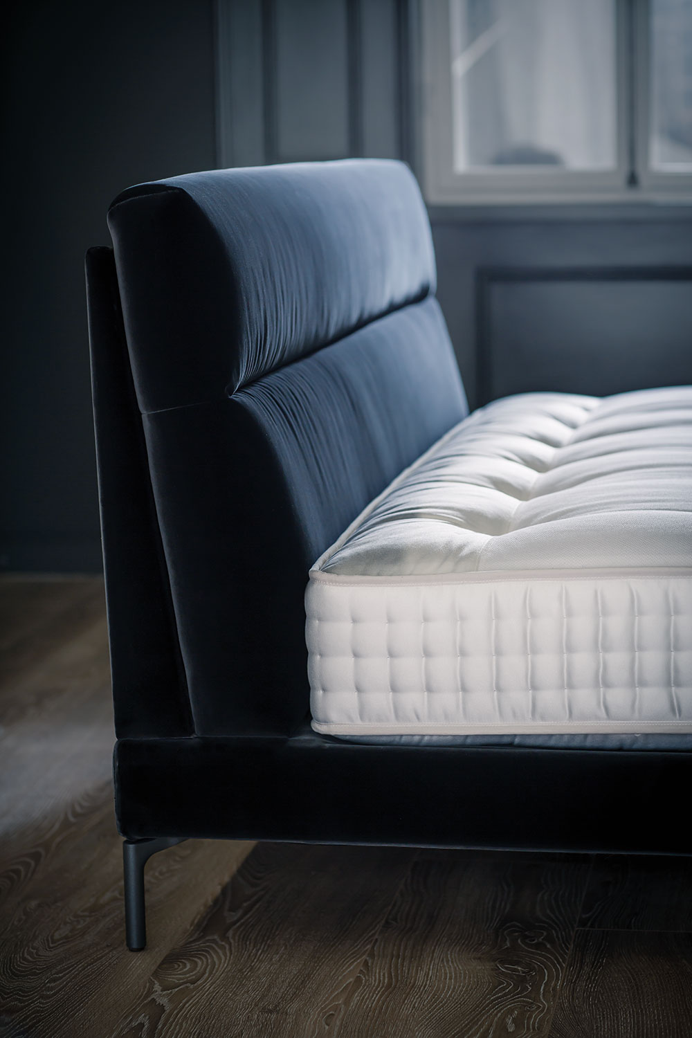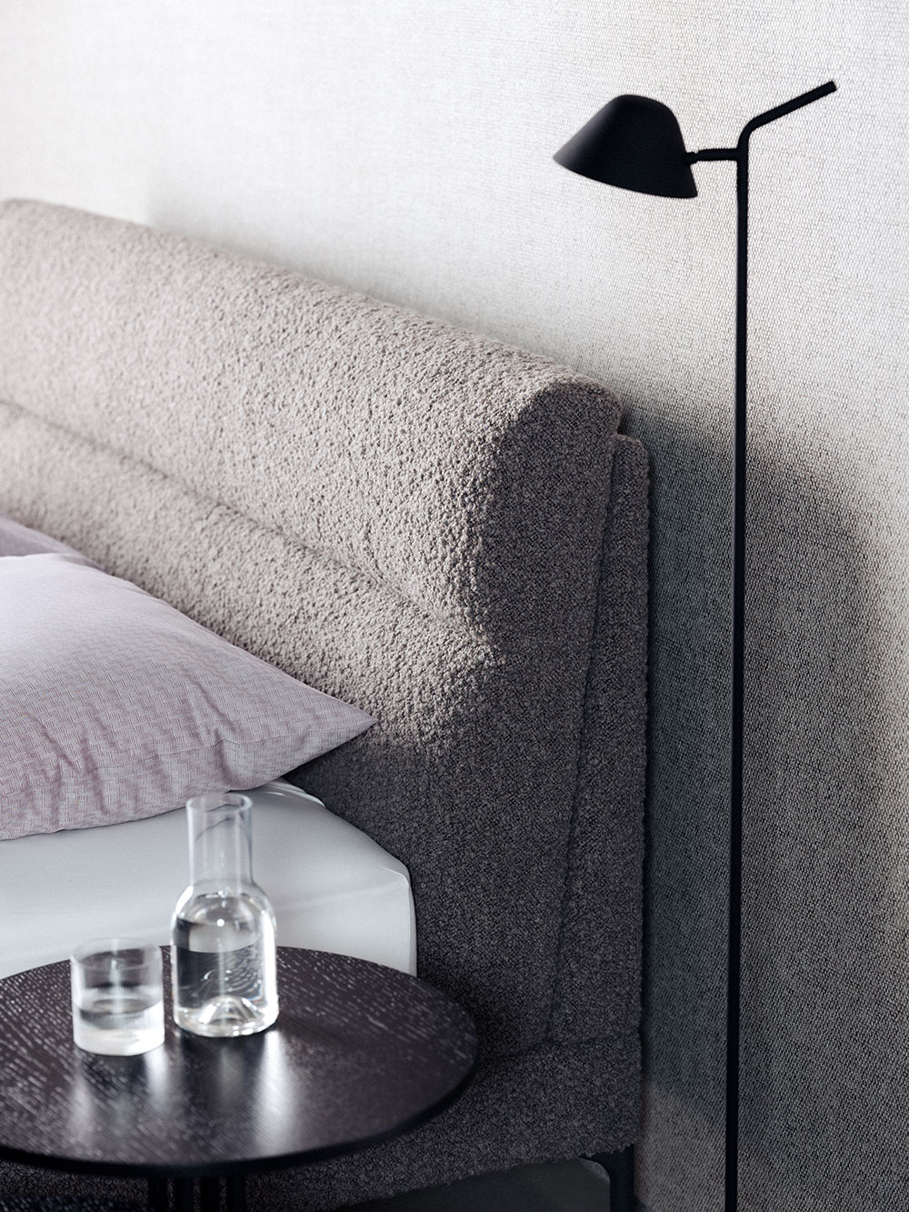 Das SCHRAMM ORIGINS COMPLETE Boxspring Polsterbett CLEO paart modernen Lifestyle mit zurückhaltender Eleganz: Willkommen Cleo! Das neue Bett von Designerin Hanne Willmann liegt fast schwebend auf dessen filigranen Füßen. Das bequeme und weiche Kopfteil, mit seiner interessanten Quersteppung, ermöglicht ein entspanntes Anlehnen. Besonders edel - der neue Stoff Pepe aus Alpakawolle.