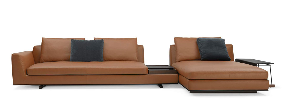 Ein klares Bild aus Symmetrie, Linie und Fläche. Darin entfaltet das Sofa seinen Rhythmus: Öffnungen in der Rückenlehne lassen die Volumen leichter erscheinen. Side Tables mit bestem Sattelleder schließen angenehm auf zum Polster. Und auch das Glas Wein findet seinen Platz, nicht neben, sondern im Sofa – der Tray aus Massivholz und Sattelleder sorgt dafür. Ein raffiniertes Spiel auf einer Klaviatur der leisen Töne. Tama Living – ein Sofa wie ein klassisches Musikstück. Eine Komposition für das kultivierte Wohnen.