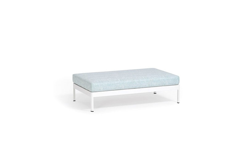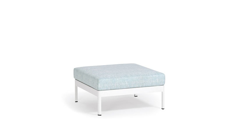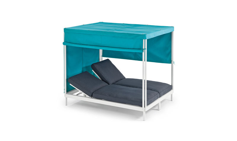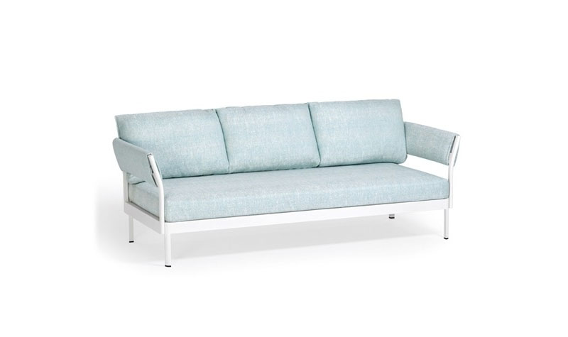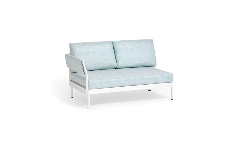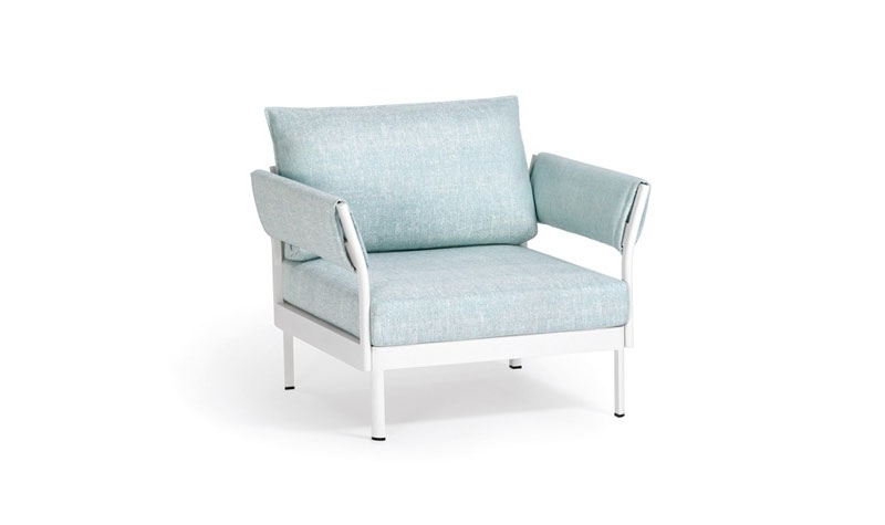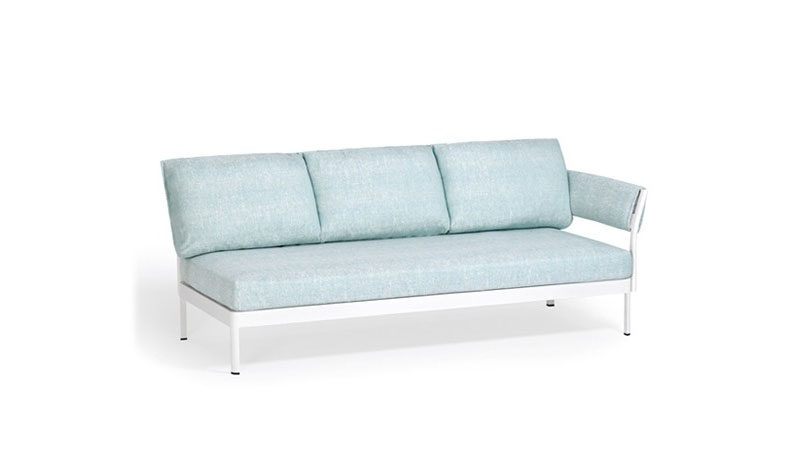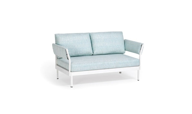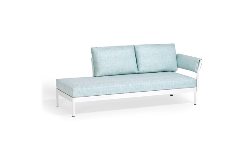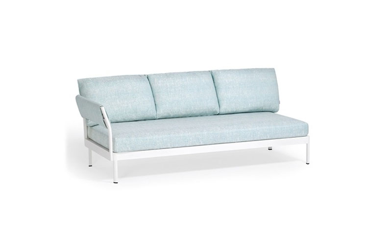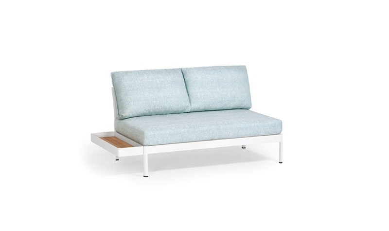 Einer-, Zweier- oder Dreier-Polsterelemente fungieren als Baukastensystem und lassen sich beliebig kombinieren. Die Gestelle bestehen aus pulverbeschichtetem Aluminium. Wer mag, wählt sie mit oder ohne Seitenlehne, die Anzahl der Rückenpolster je nach Vorliebe und Komfort. Das Tablett zum Einhängen bietet Weishäupl mit einer Einlage aus Filz, Teak oder HPL an, Tische in unterschiedlicher Größe und Ausführung machen den Outdoor-Lounge-Look perfekt.