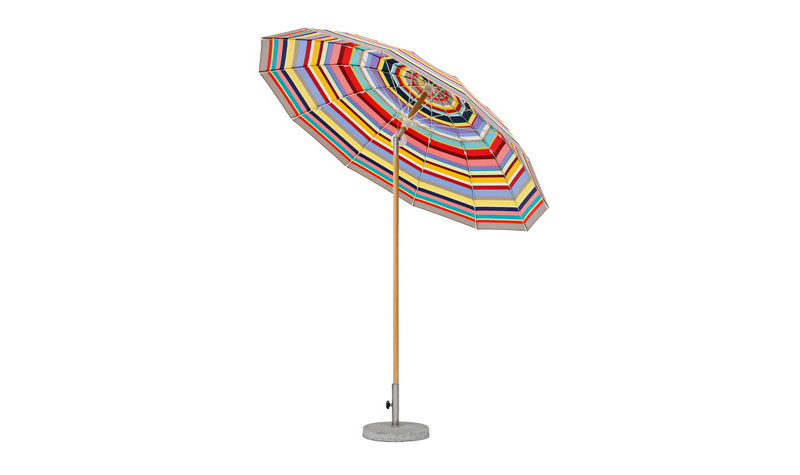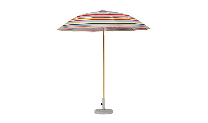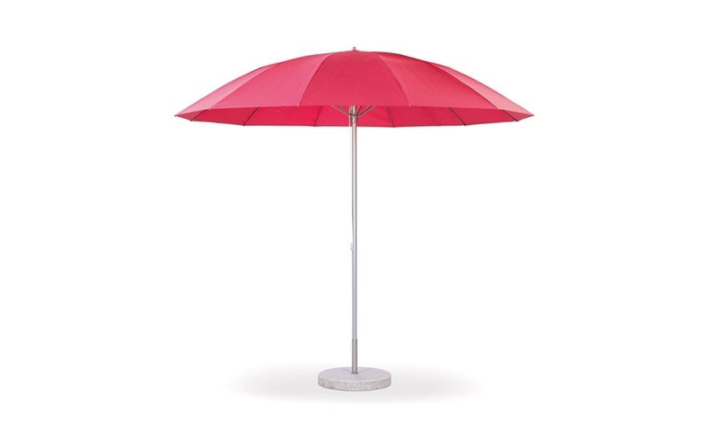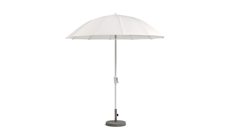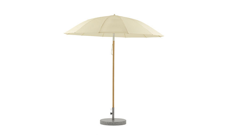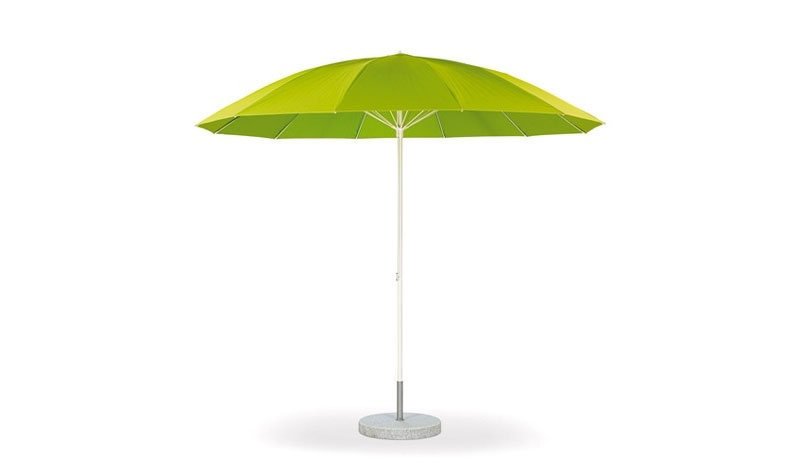 Weishaeupl hat den Pagodenschirm für den Sonnenschein konzipiert und bietet ihn mit einem Schirmmast aus pulverbeschichteten Aluminium oder lackiertem Hartholz an. Es gibt ihn in zwei verschiedenen Größen, den kleineren auch mit Knick. Die Bespannung wird durch Fiberglasstäbe und Naben aus Polyamid getragen, ein Flaschenzug macht das Öffnen kinderleicht. Und weil Vielseitigkeit die Stärke von Weishaeupl ist, gibt es den kleineren Pagodenschirm mit weißem Gestell auch mit Kurbelmechanismus. So wird das Öffnen und Knicken zum Kinderspiel!